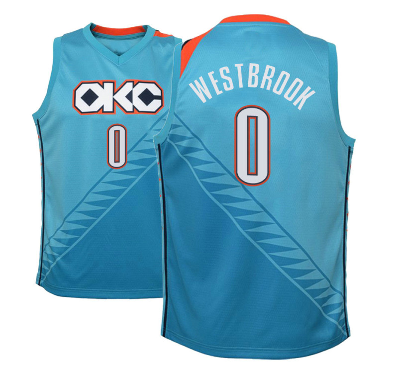 - Youth 2018-19 Russell Westbrook Thunder #0 City Edition Turquoise Jersey