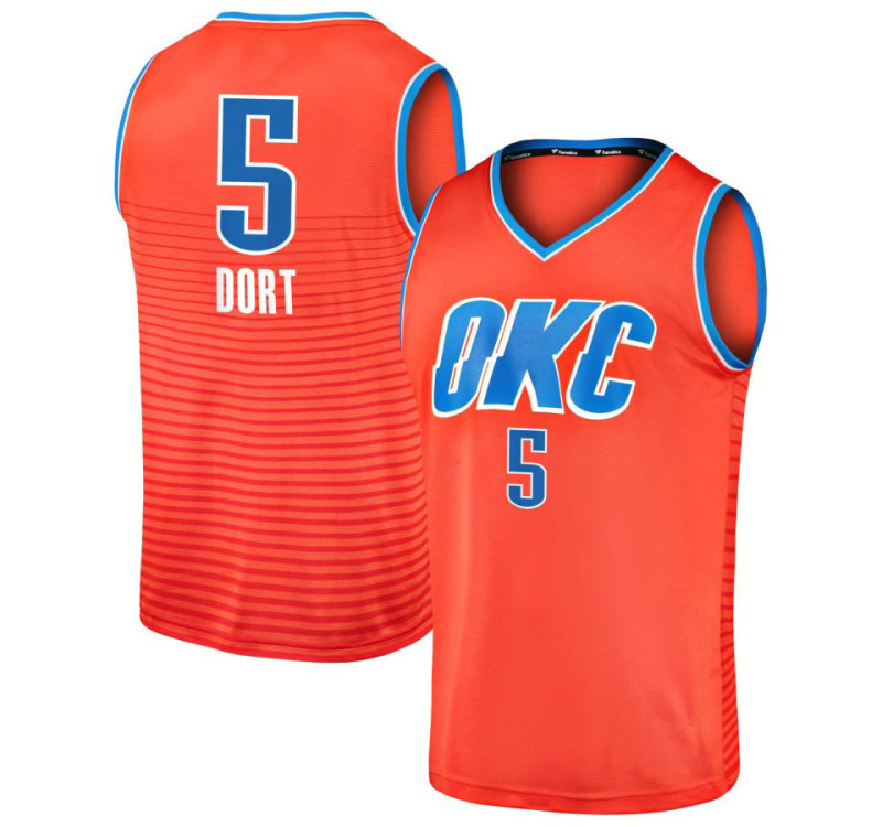 - Youth Thunder #5 Luguentz Dort Fast Break Orange Statement Edition Replica Jersey